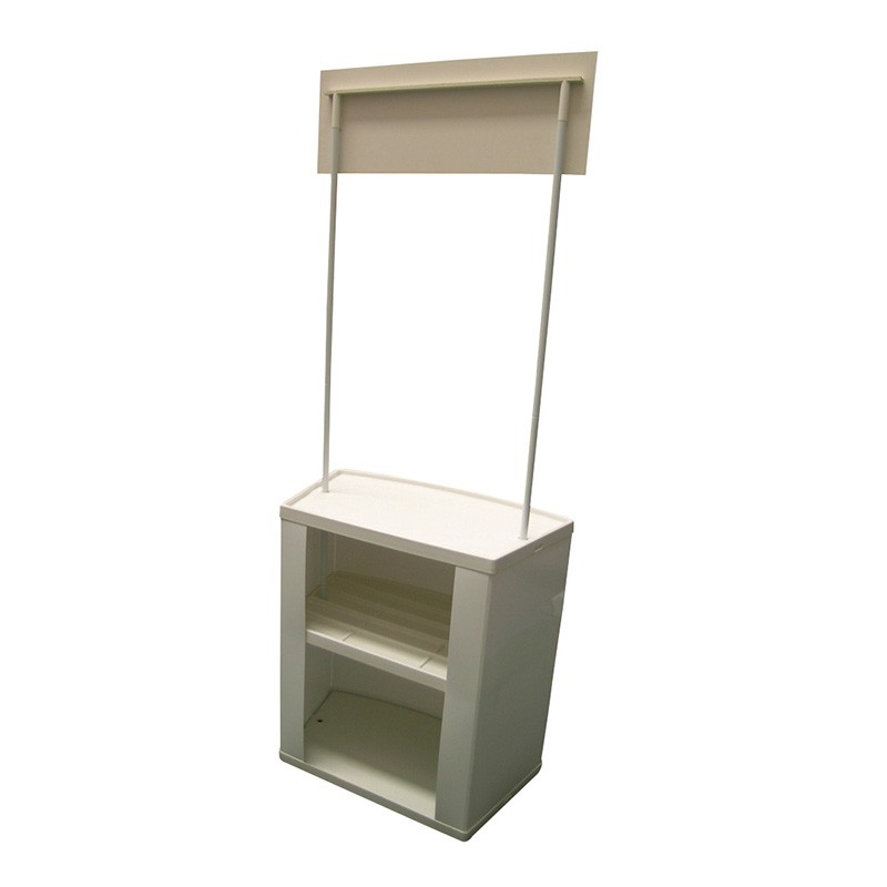 Mostrador de demostración económico, portátil y ligero. Este tipo de mostrador es muy útil para promociones en el punto de venta.